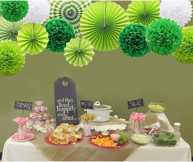 飾り付けを素敵に彩るバースデーデコレーションセットを作りました。忙しいママもセンスに自信がない方も 「簡単に」「かわいく」 セッティングができるよう。すべてがセットになったオールインパッケージです。【緑色14個セット(写真が示すように)】緑色ペーパーファン6個セット:16インチ(40cm) 2、12インチ(30cm) 2、8インチ(20cm) 2。8インチ(20 cm)のペーパーフラワー:フルーツグリーン 1。10インチ(25 cm)のペーパーフラワー:ホワイト 2、フルーツグリーン 2、薄緑 2、ダークグリーン 2。