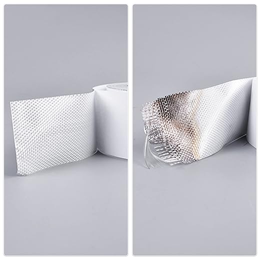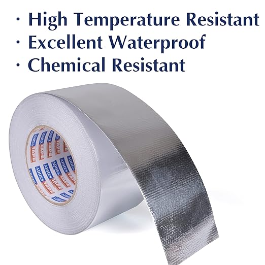耐引裂性に優れたアルミ箔テープ:このアルミテープは、ガラス繊維を添加することにより耐引裂性であります。低温度域から高温度域まで使用可能(~200℃程度)