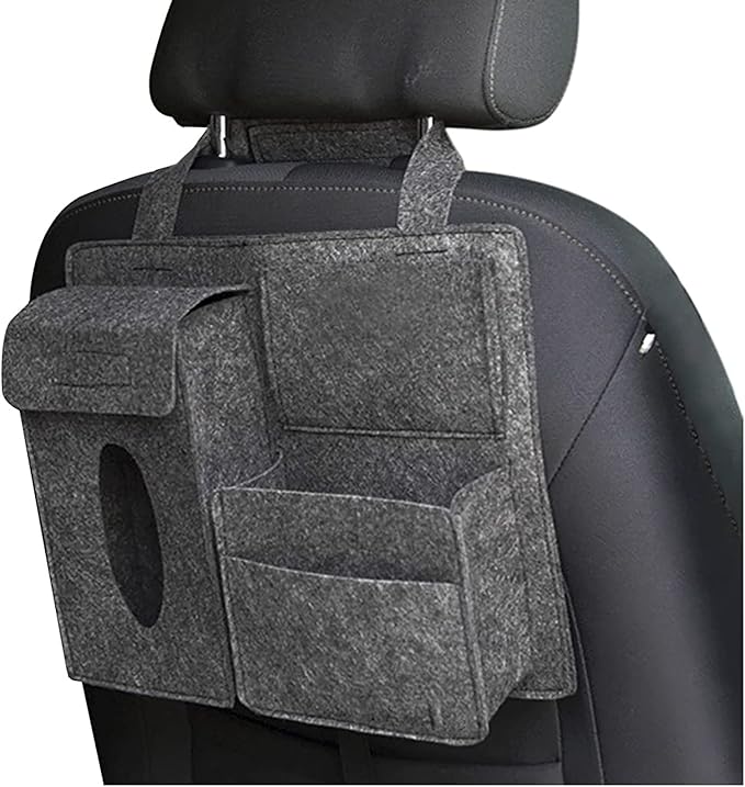 車用ティッシュボックス 車用収納ケース 大容量 収納ボックス ティッシュカバー 車載用 シートバックポケット ティッシュホルダー 小物収納 フェルト 後部座席 吊り下げティッシュケース (ダークグレー)