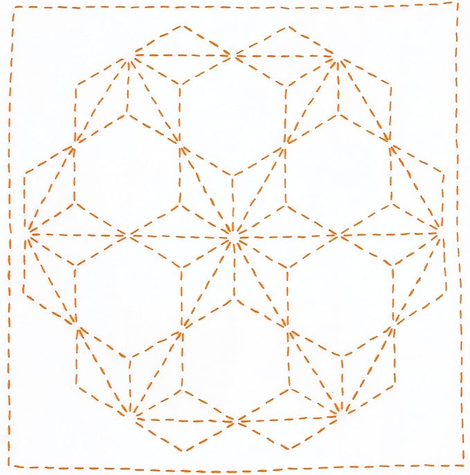 セット内容:刺し子糸、図案プリント済み晒木綿(白)、刺し子針(特大)長さ48mm、カラー説明書