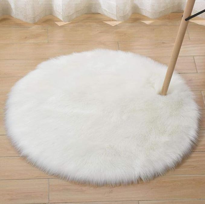 円形 洗えるラグ カーペット ふわふわ 丸型 滑り止め付 オールシーズン ラグマット 手触り優しい 長毛 絨毯 冷房 床暖房対応 折り畳み ラグマット (40cm, ホワイト)