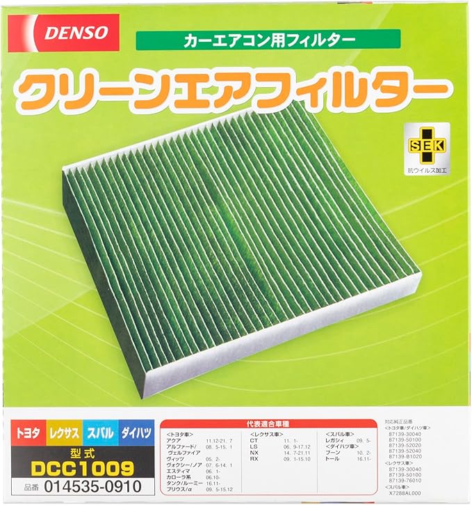 デンソー(DENSO) カーエアコン用フィルター クリーンエアフィルター DCC1009 (014535-0910) 高除塵 PM2.5対策 抗菌・防カビ 抗ウイルス 脱臭 ※車種適合確認要
