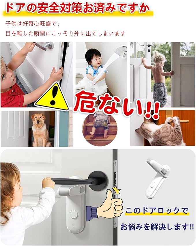 【事故予防】ペットのいたずら対策にも有効です。両面テープは3Mの強力タイプで、優れた粘着力があります。しっかりとロックしてくれる仕組みのため、元気な赤ちゃんの思わぬ事故を、未然に防ぎます!