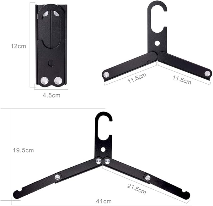 prendre 【2個セット】 アルミ合金製 折りたたみハンガー コンパクト 携帯 持ち運び 洗濯用品 衣類 旅行 出張 (ブラック) PR-ALUMIHANGER-BK
