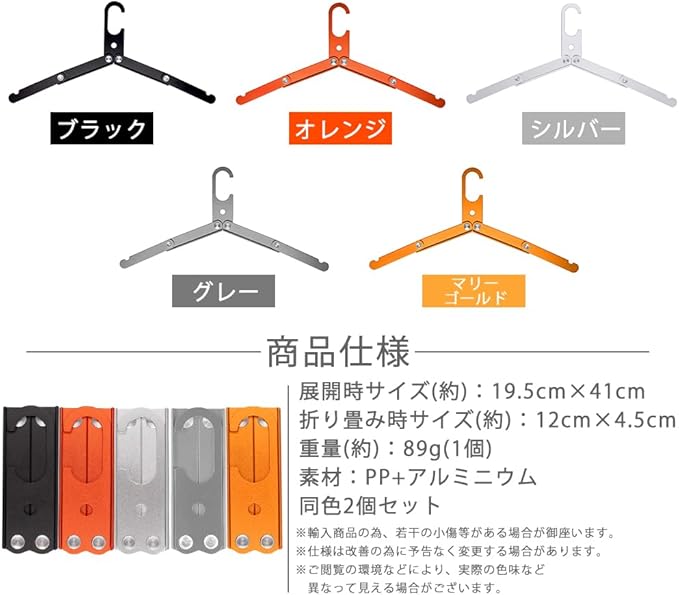 展開時サイズ(約):19.5cm 41cm 折り畳み時サイズ(約):12cm 4.5cm 重量(約):89g(1個) 素材:PP+アルミニウム 同色2個セット