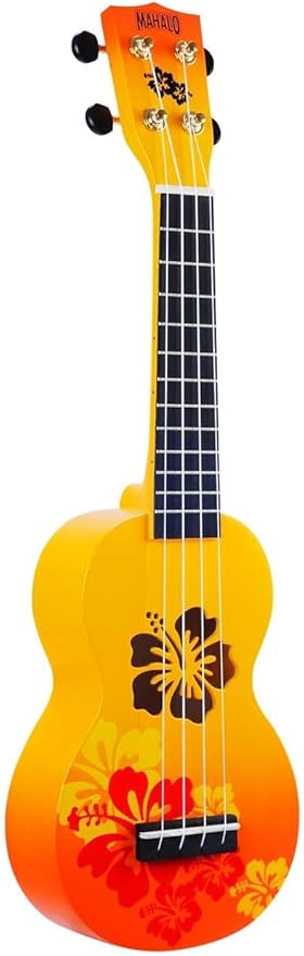 MAHALO ソプラノ UKULELE デザイナーシリーズ ハイビスカス MD1 HB オレンジ バースト