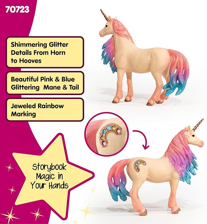 【シュライヒについて】 2020年に創立85周年を迎えたシュライヒ社は、ドイツ最大手のおもちゃ会社の一つで世界屈指のフィギュアメーカーです。シュライヒフィギュアは世界60カ国以上で販売されており、リアルに再現された精巧な製品は、世界中の子どもたちに愛されています。 【商品について】 フ、ワ、フ、ワ〜。マシュマロ・ユニコーンはとーーーってもふわふわなんです! やわらかい毛をなでるとまるで雲をさわっているような気持ちになります。 写真映えするカラフルなたてがみに、キメキメのポーズ。マシュマロ・ユニコーンは白黒写真が好きではありません。だからカラフルなたてがみが映えるスナップショットがおすすめです。写真映えするその姿にきっとほれぼれすることでしょう。