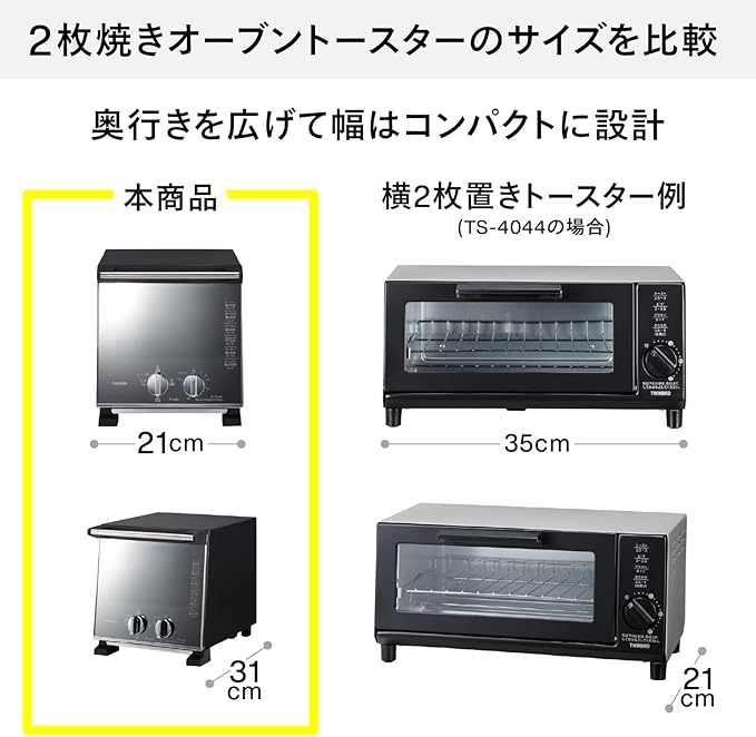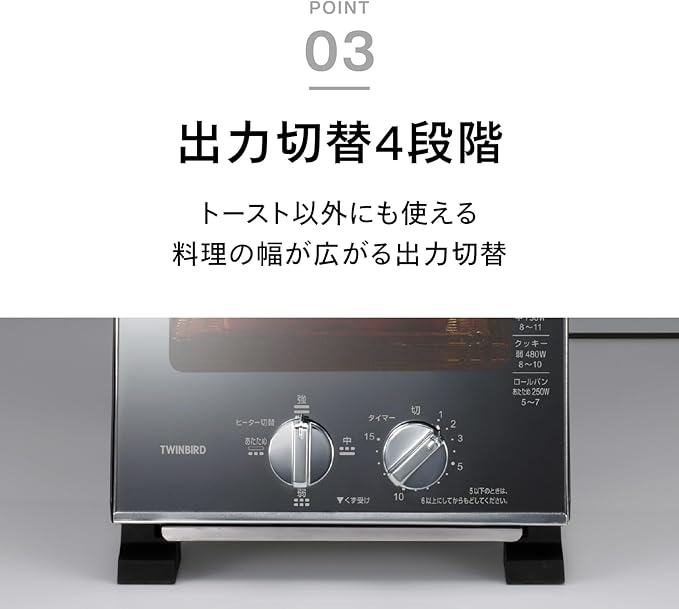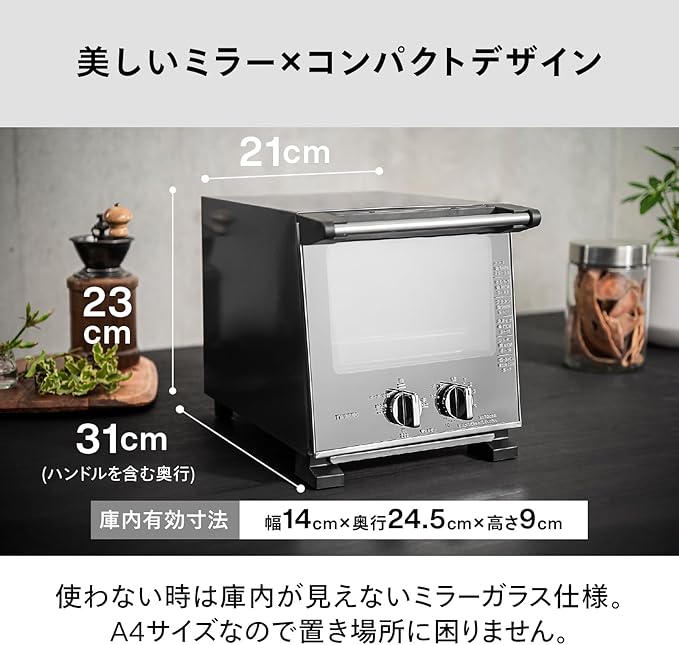 TS-D037はA4サイズで置き場所に困らない、ツインバードのオーブントースターです。使わない時は庫内が見えないミラーガラス仕様で、どんなお部屋にもマッチます。スリムでもグラタン皿も入る十分な庫内サイズと4段階の出力切替で、さまざまな用途でお使いいただけるオーブントースターです。