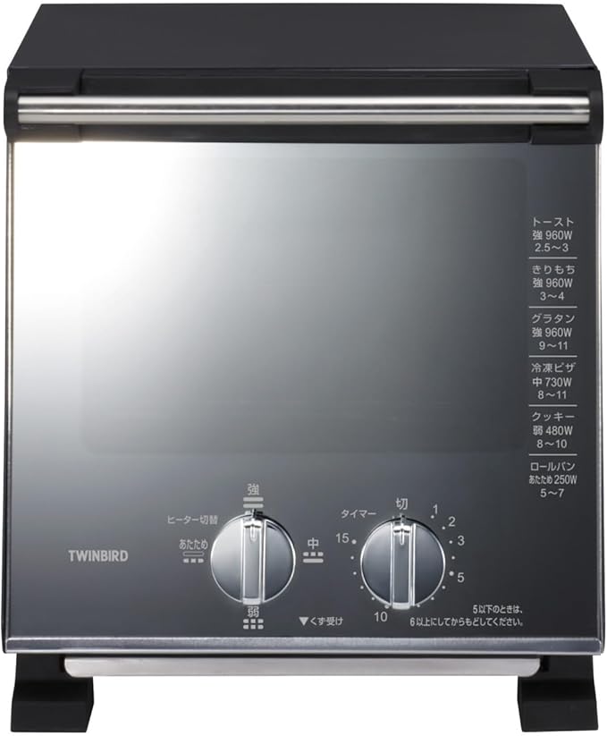 TWINBIRD(ツインバード) トースター オーブントースター 2枚焼き 小型 横幅21cm 960W 4段階切替 コンパクト ミラーデザイン 一人暮らし 新生活 黒 ブラック TS-D037PB