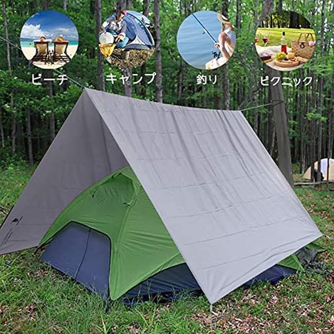 ➤【多様な使い方】:テントの下に敷いてグラウンドシートとして使うと、テントを保護すると共にテントの底部を清潔に保ちます。四隅をロープで引っ張ると、オープンルーフになります。