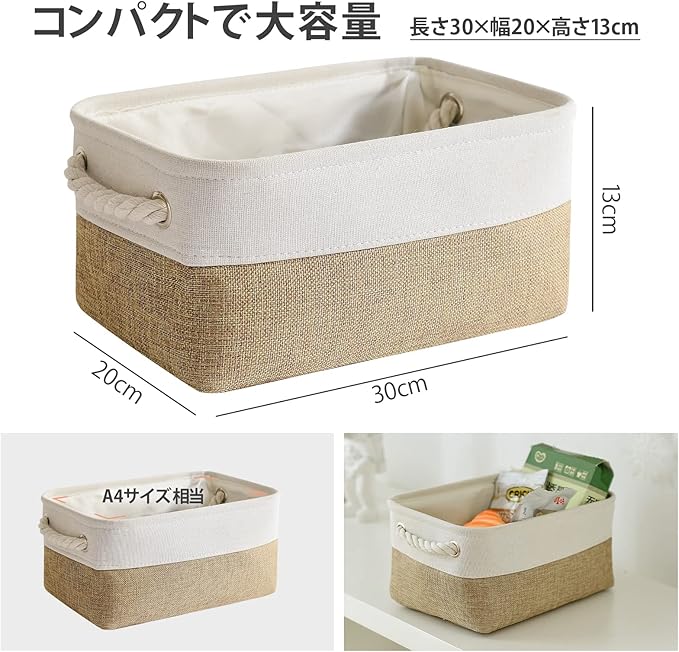 【用途広い】 自然・シンプルのデザインでリビング、ベッドルーム、ランドリー、子供部屋など、さまざまな整理整頓のニーズに応えられる。また、丸みを帯びた長方形のデザインは、特に棚にフィットし、棚に収まりやすくなっています。どこへご利用してもお部屋の雰囲気を馴染めます。