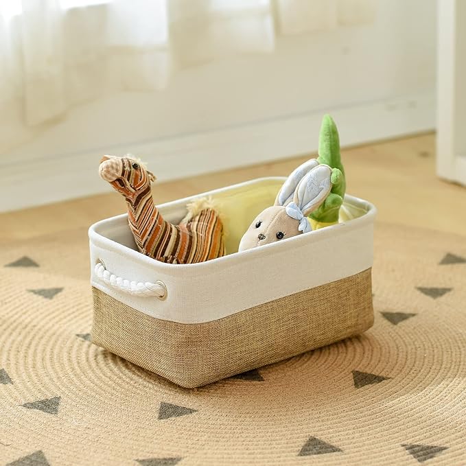 TheWarmHomeかご バスケット 収納 かご 30cm 20cm 13cm カゴ 引き出し収納 収納ボックス 綿麻製 布製 コンパクトデスク収納 玄関収納 おもちゃ収納 折り畳む式 おしゃれなインテリア雑貨 高耐久性 ハンドル付き ホワイトカーキ