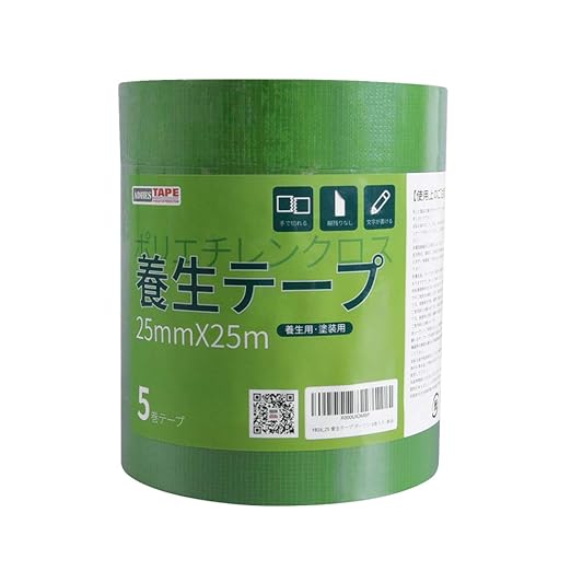 ADHES 養生テープ ガムテープ 緑 はがせる 仮固定用 幅25mm*長さ25m (YB16-弱粘着)