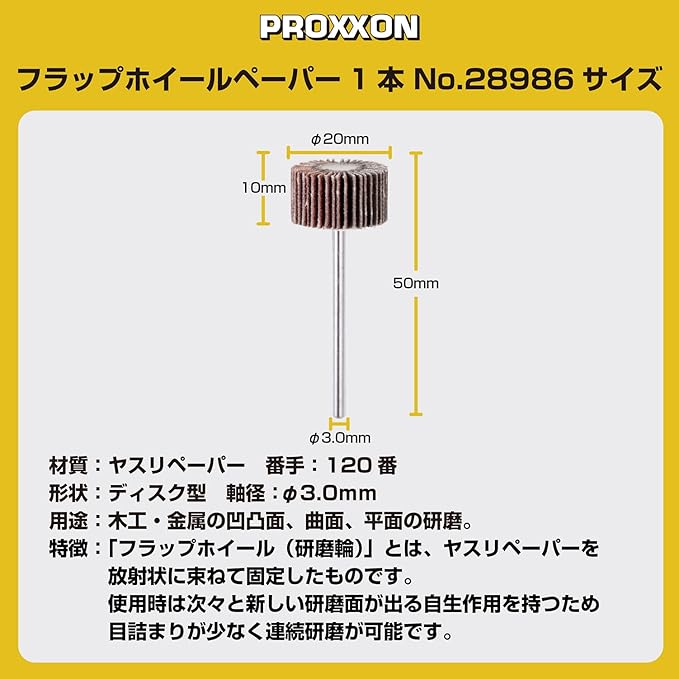 プロクソン(PROXXON) フラップホイールペーパー1本 【ホイール型20mm 120番 軸径3.0mm】 NO.28986