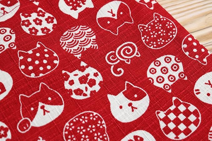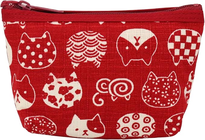 京佑 日本製 綿 ミニポーチ 約8.5 13cm コインケース 小物入れ 化粧 和柄 猫 にゃんこもん 赤