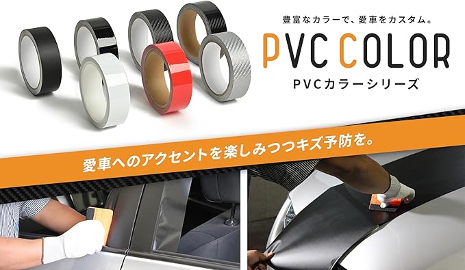 カラータイプは台紙を剥がして直接貼り付けるだけの簡単施工で、カラーアクセントとキズ保護を同時に実現します。カーラッピング専用フィルムとして開発されており、耐候3年、使用後に糊残りのない仕様で設計されております。
