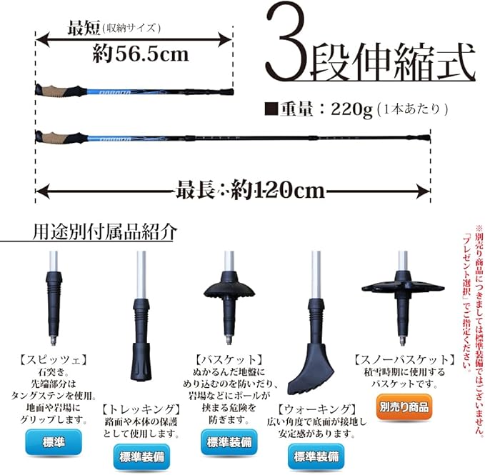 付属品:取扱説明書・トレッキングキャップ 2 バスケット 2
