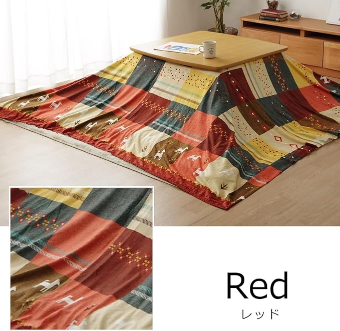 イケヒコ こたつ布団カバー 長方形 シンシア 約210 250cm レッド 上掛 ギャッベ 北欧 #5189279