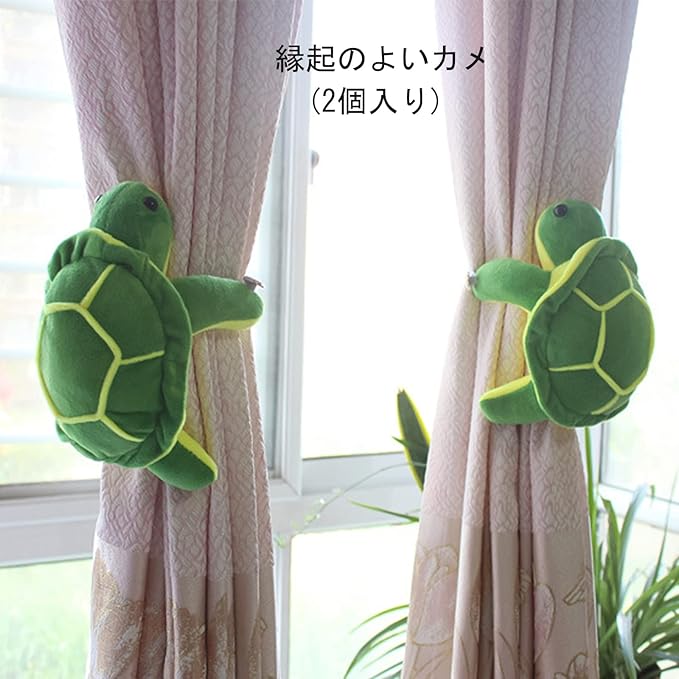 カーテンタッセル ぬいぐるみ 2個セット かわいい 亀ちゃん 房かけ カーテン ボタン式 取付簡単 工具不要 子供部屋 房掛け 児童書斎 窓装飾 リビング 部屋飾り グリーン