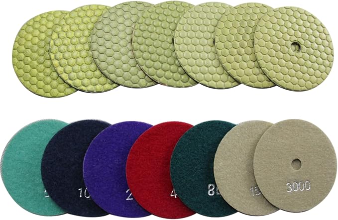 パッケージに含まれるもの:7 ダイヤモンド研磨パッド。グリット50, 100, 200, 400, 800, 1500, 3000。