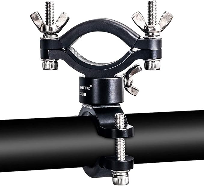 LIGHTFE 自転車ライトホルダー ブラケットアルミニウム合金素材を使用, バイクライトマ ウント調整可能なオープンクリップはビッグサイズ自転車ライトに特化、360 回転クリップホルダーと蝶ナットは固定とリリースが簡単