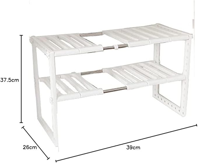 キッチンや洗面台下のスペースを有効活用できるラックです。 横幅が伸縮し、棚も取り外せて移動ができるため、各ご家庭の排水トラップを避けて設置ができます。 棚の高さも調節できるため、収納するものや空間に合わせて自由に使える優れもの! デッドスペースを無駄なく収納に! 組立式 サイズ/約39~63 26 37.5cm(使用時) 重量/約815g 耐荷重/5kg(1段) 素材・材質/ポリプロピレン、ステンレス鋼 セット内容/フレーム:2個、棚板:10個、ネジ:8個、パイプ:4本、取扱説明書