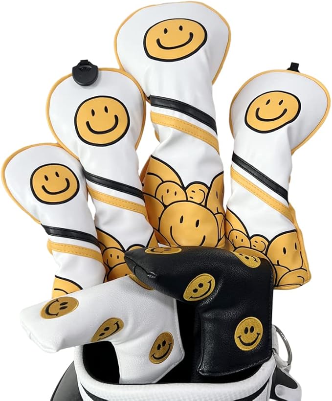 スマイル ヘッドカバーゴルフ ドライバー ウッド用 ユーティリティ用 パターカバー ピンタイプ用 スコッティーキャメロン オデッセイに適合 スマイル イエロー