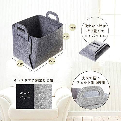 収納 ボックス フェルト 折り畳み 小物入れ フェルト生地 バスケット 北欧 衣類 収納 クローゼット 取っ手付き洗濯かご インテリア 洗濯カゴ ランドリー 収納ケース S&E (ダークグレー2個セット)