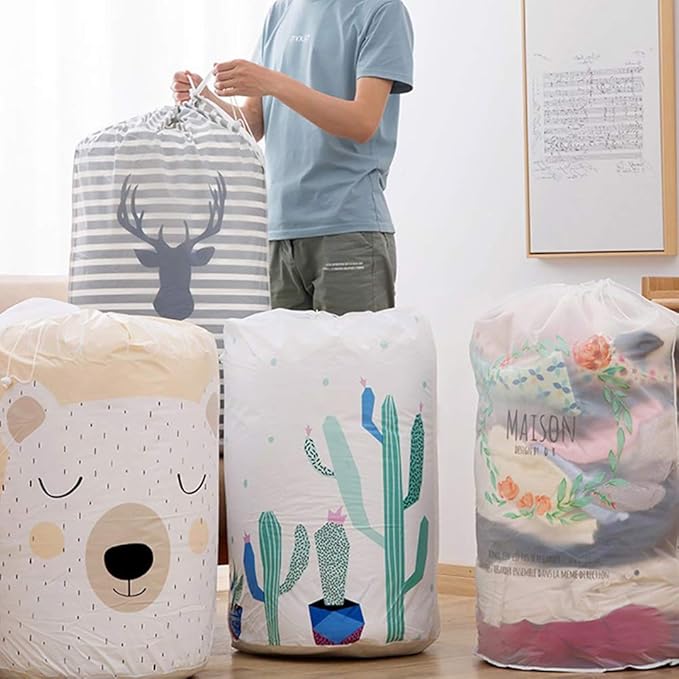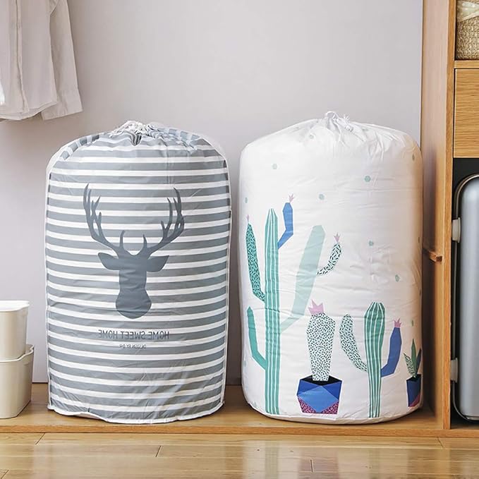 OUNONA プリント付き防水収納バッグ ドローストリング式 大容量 キルトや衣類の整理に で省スペース 防湿防塵 ランドリーオーガナイザーとしても使用可