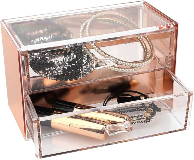 この2段引き出しの収納ケースは、ジュエリーの整理に最適です。底面には滑り止めが付いているので、しっかりと固定することができ。