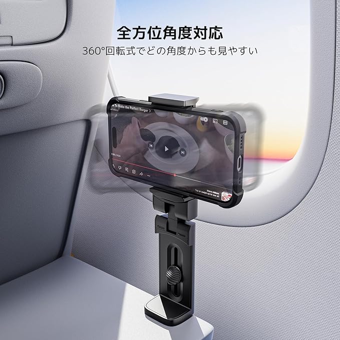 ✅【各場所で大活躍スマホホルダー】卓上、デスク天板の端、飛行機客室の折りたたみ式トレイ、スーツケースのキャリーバー、どこでも設置可能です。オフィス、ベッドサイド、キッチン、ジム、ホテル、車内などの場所で、両手を解放して自撮り、動画視聴、ビデオ通話などを楽しみます。