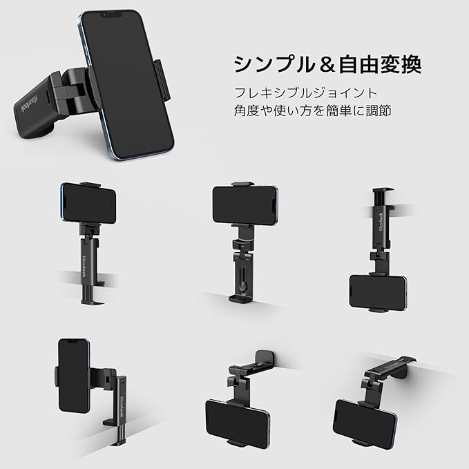 ✅【幅広い互換性】上部のスマホ固定用のホルダーは最大96mmまで開くことができて、様々なスマホ機種に対応可能です。下部のクランプは、 グリップできる最適な厚さが15-39mmであり、平坦な場所に固定することができます。