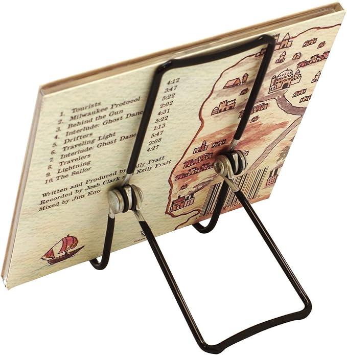 アメリカのブックストアやインテリアショップなどで使われる、シンプルなデザインのワイヤー製スタンド。。。3本のワイヤーを調節することで、角度などの微調整が可能です。CDや本、スマートフォンなどのディスプレイにどうぞ。アメリカ製。。。・本体サイズ(折りたたみ時):横68 縦83 厚30(mm)。。*ブラックとホワイトは、ビニールコーティング加工です。。*シルバーは、ビニールコーティングされていないZINC素材です。。。商品色傾向:銀色。。表紙パターン:無地。