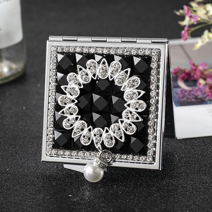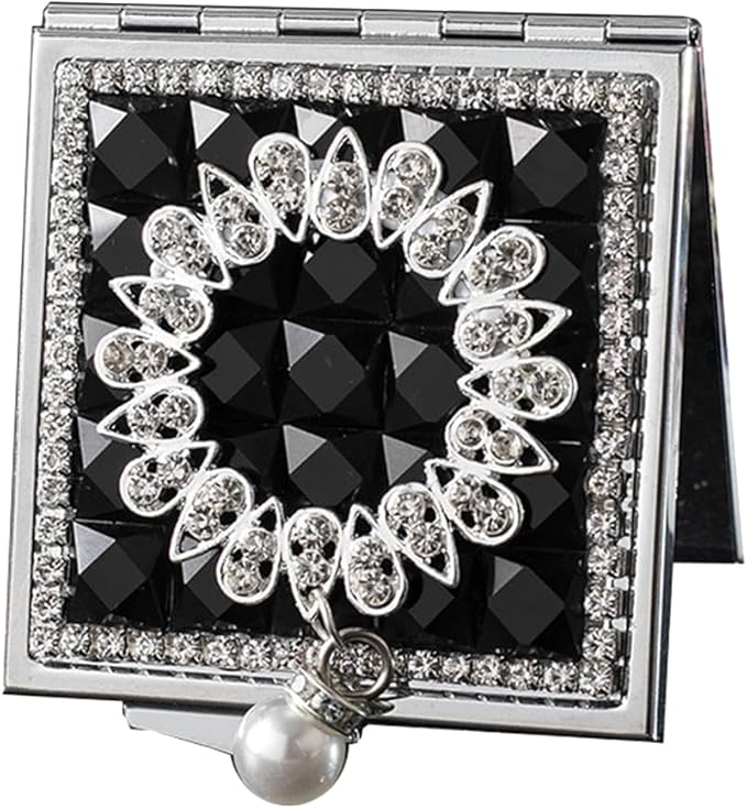 BESTOYARD 手鏡 コンパクトミラー キラキラ 持ち運び 化粧鏡 小型 おしゃれ 化粧ミラー 折りたたみ鏡 女優ミラー 小さい鏡 ミニポケットミラー 折りたたみミラー 旅行 化粧用 ポーチ 贈り物 ギフト プレゼント ブラック