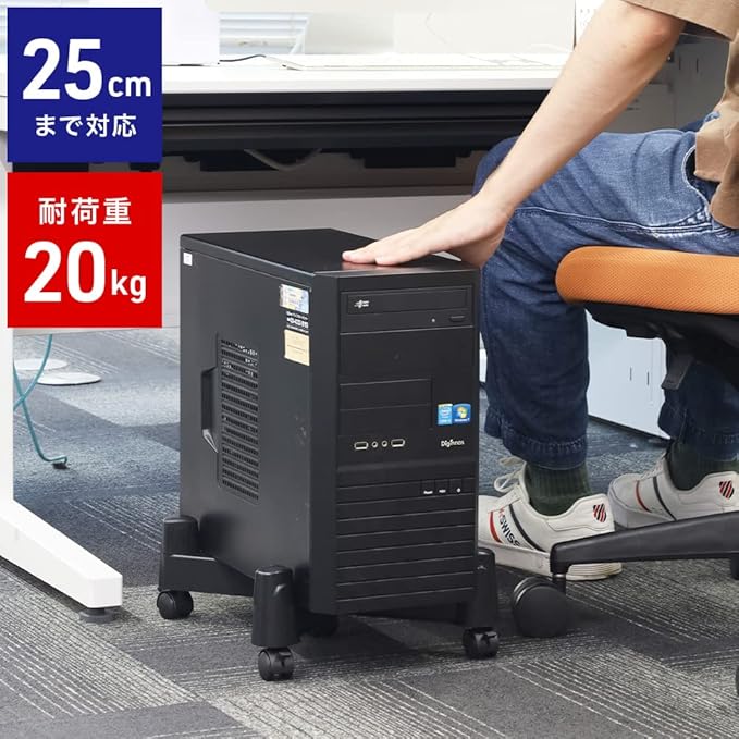 UPstore CPUスタンド パソコンスタンド パソコンキャリー デスクトップ用 床置き PCスタンド キャスター付き台車 ほこり対策 熱対策 無段階調節 幅7cm~25cmまで対応 家電スタンド