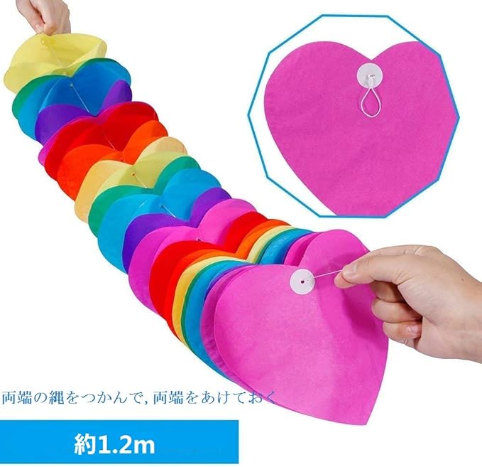 【セット内容】ペーパーフラワー ハニカムボール *6 「HAPPYBIRTHDAY」を書いたカラーペーパー *1 カラー心の形長い花輪 *1