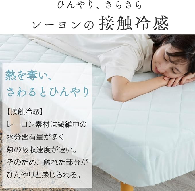 レーヨンは吸湿性にも優れている為、寝汗も吸収するのでサラッとしたドライ感が得られます。
