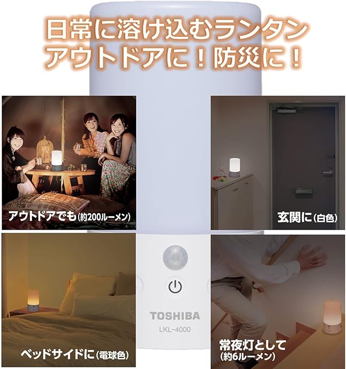 東芝(TOSHIBA) センサー付きLEDランタン 防水性能(JIS IPX4) 無段階調光&調色(白色/電球色)機能付 人感&明暗センサー搭載 LKL-4000(W)