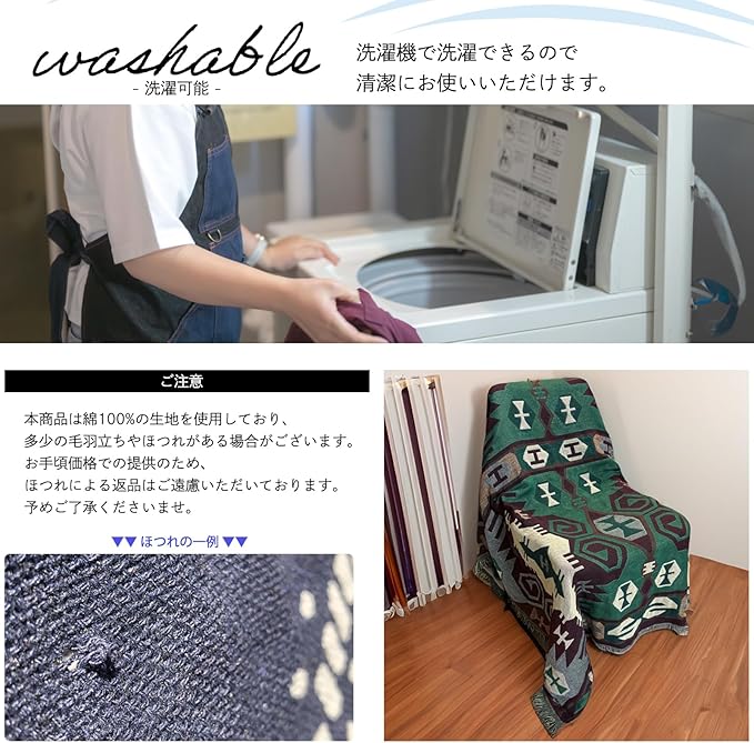 このソファ マルチカバーは、ホコリが出にくく、赤ちゃんや子どもがいる家庭でも安心して使える仕様です。丁寧な縫製でほつれにくく、丈夫で型崩れしにくいため、洗濯しても風合いを損なわず、美しいデザインを長く楽しめます。