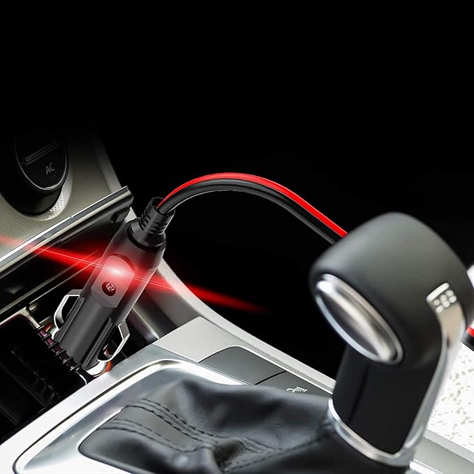 ★ わかり易い: タバコライタープラグはスイッチボタン付きで、使い勝手が良いです。シガーライターコネクタの赤色のLEDインジケータランプが点灯し、作業中です。