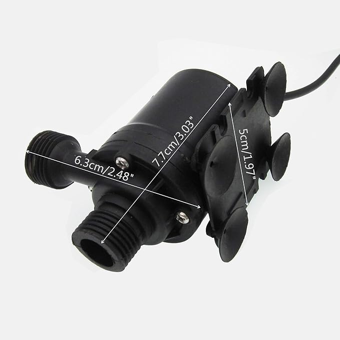 √ポンプ本体と一直線上にある点が水入口であり、ポンプ本体に垂直な点が水出口です。 完全防水、超長寿命(3万時間以上)。 ブラシレスモーター、小型、高効率、低消費、低ノイズ(35dB未満)。