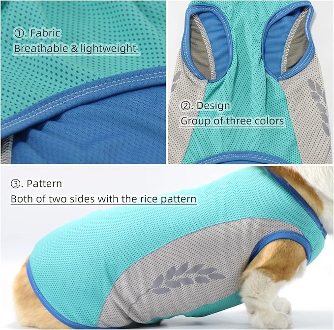 クールベスト犬 水で濡らす 冷却ベスト小中大型犬(S~11XLサイズ)冷感犬服 犬の服 夏用 柴犬 無地タンクトップ メッシュ 接触冷感 ひんやり クール 反射機能 暑さ対策 犬 服 春 夏 小型犬 中型犬 大型犬 ツートン色 (①ミルキーブルー,S)