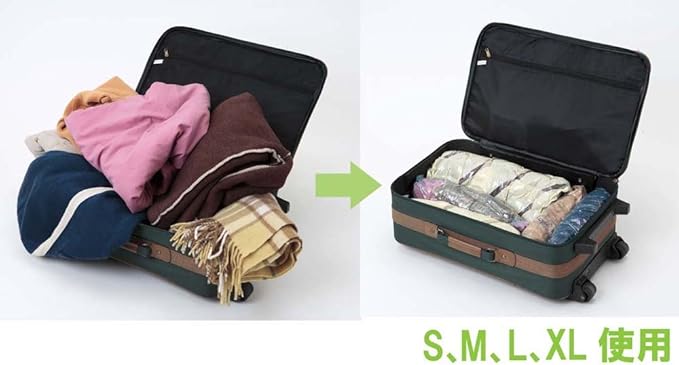 押さえるだけで簡単に衣類がコンパクトになる衣類圧縮袋