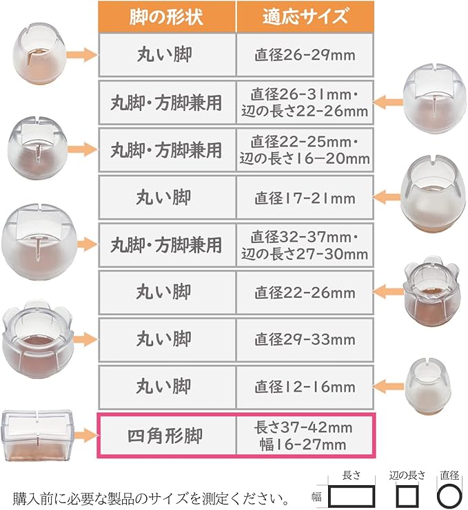【セット内容】いすのあしカバー (四角形長さ37-42mm/幅16-27mmの椅子脚に適応)16個セットで、4つの椅子や他の家具に使用できます。