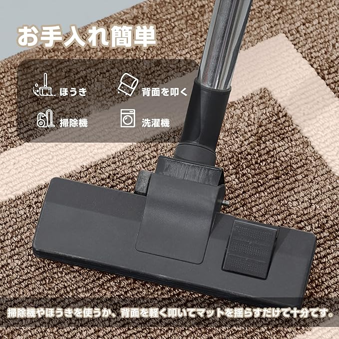 【お手入れ簡単】洗濯可能でいつでも清潔。洗濯ネットに入れて洗濯機で丸洗いできます。速乾性も優れています。あるいは、掃除機やほうきを使うか、背面を軽く叩いてマットを揺らすだけで十分です。※本製品を初めて使用するときは、表面が折シワや歪みになる可能があります。ご了承ください。開封後にまずマットを手に取り、数回振ってみていいですね。