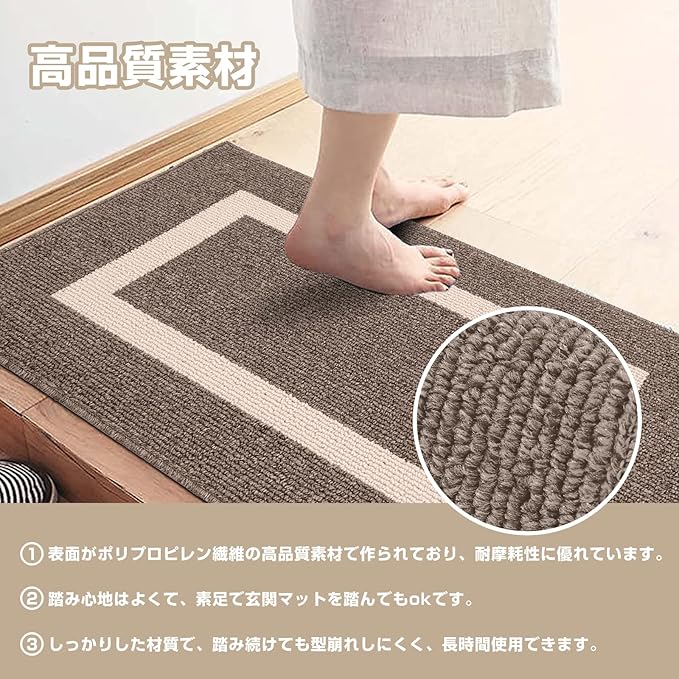 【高品質素材&耐久性良い】玄関マットは表面が高品質素材で作られており、耐摩耗性に優れています。踏み心地はよくて、素足で玄関マットを踏んでもokです。しっかりした材質で、踏み続けても型崩れしにくく、長時間使用できます。