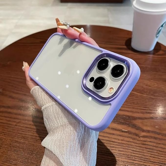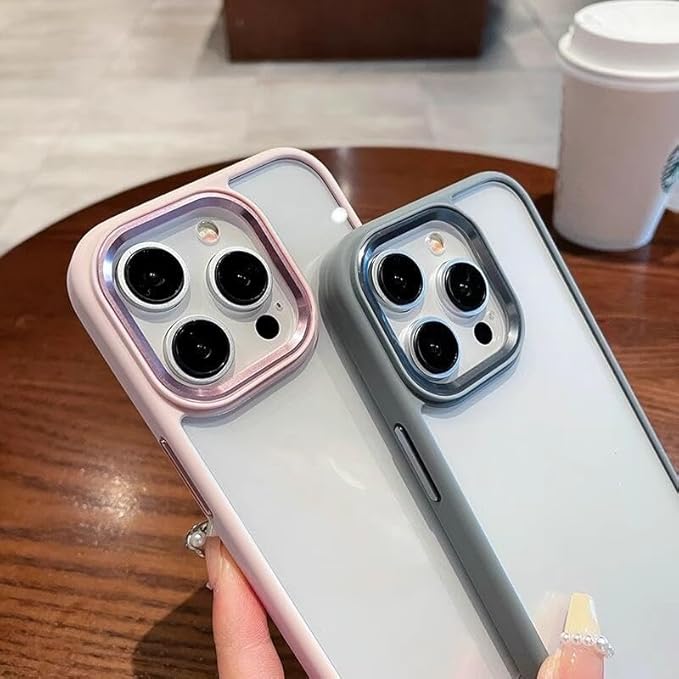 ツートンカラー:フレームと透明背面の配色でお洒落、ボタンとカメラの枠はメタルカラーで可愛い。
