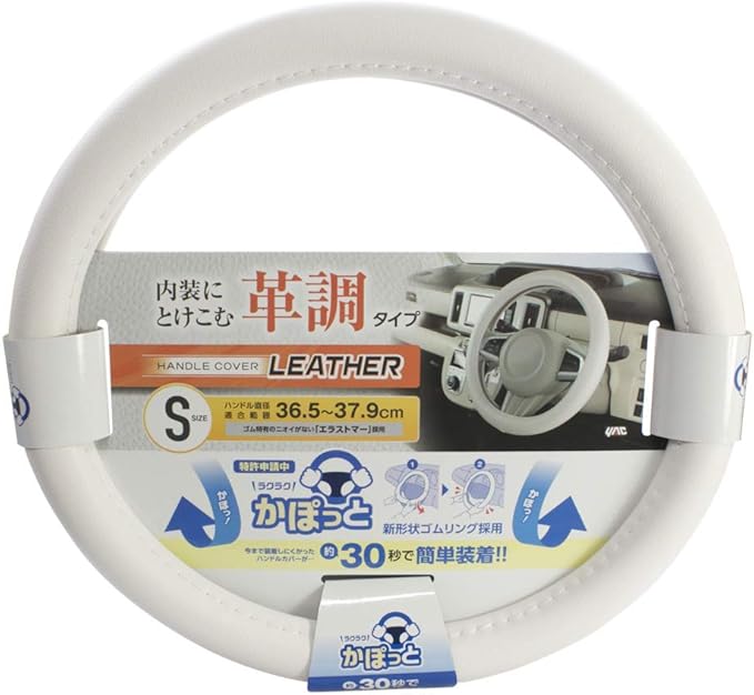 槌屋ヤック(Tsuchiya Yac) 車内用品 ハンドルカバー かぽっとハンドルカバー ベーシックレザー ホワイト Sサイズ KC-L107