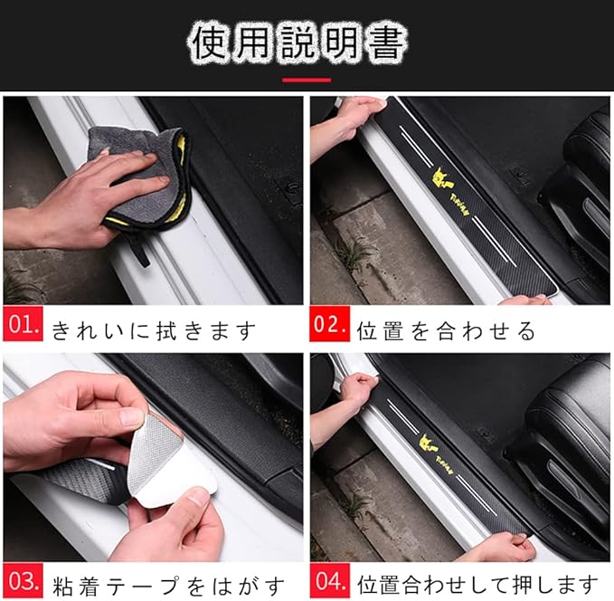 【簡単取付】裏面には強力な両面テープが貼り付けられています、接着面のほこりを取り除き、取り付け位置を確認後、商品裏面の両面テープの剥離紙をはがし取り付け、しっかりと密着させてくださ。