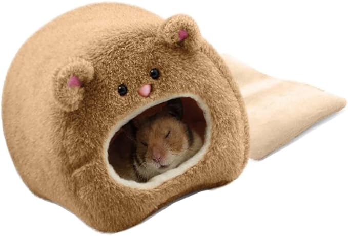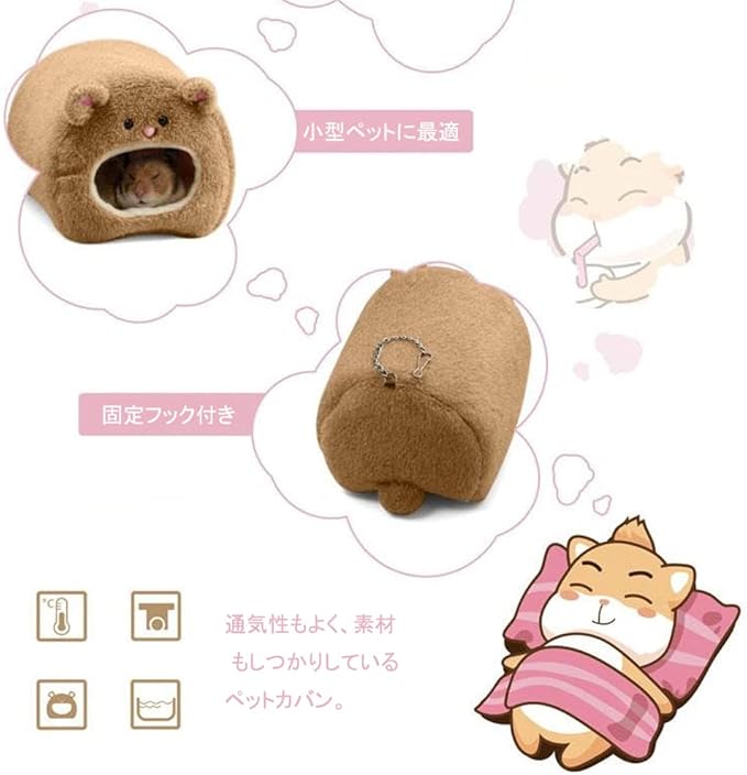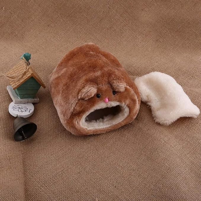 LIKENNY 冬用ハムスタークッションベッド 小動物用ハンモック 暖かいハムスターハウス 遊び場 休憩所 暖かい巣 防寒 保温 ケージに固定 小動物用 寝袋 11*11*8cm 水洗い可能 (ブラウン)